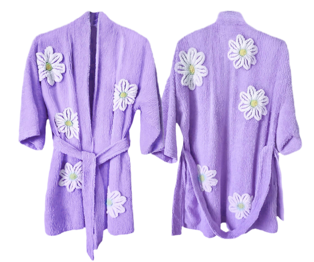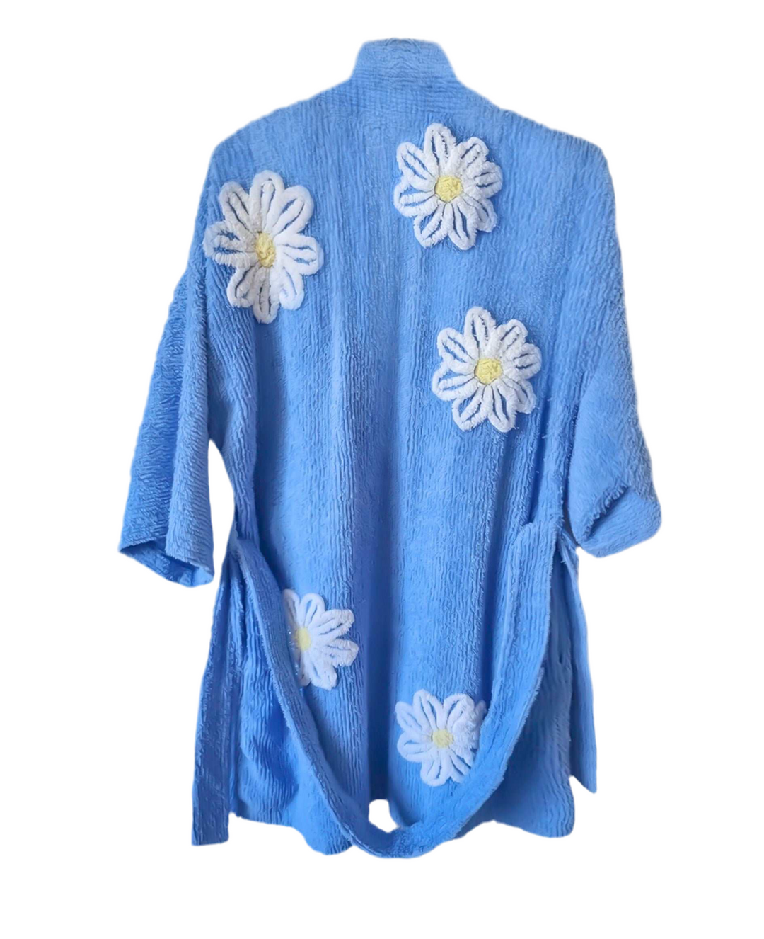 Flawless “Falling Daisies” Chenille Bathrobe Kimono blue, yellow, white 2025