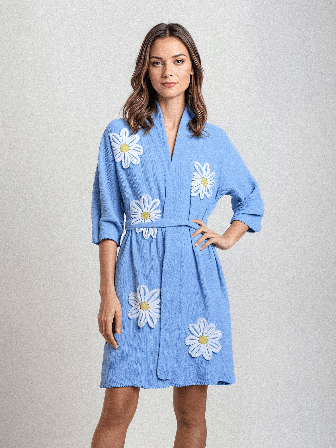 Be the first to review “Flawless “Falling Daisies” Chenille Bathrobe Kimono blue, yellow, white 2025”