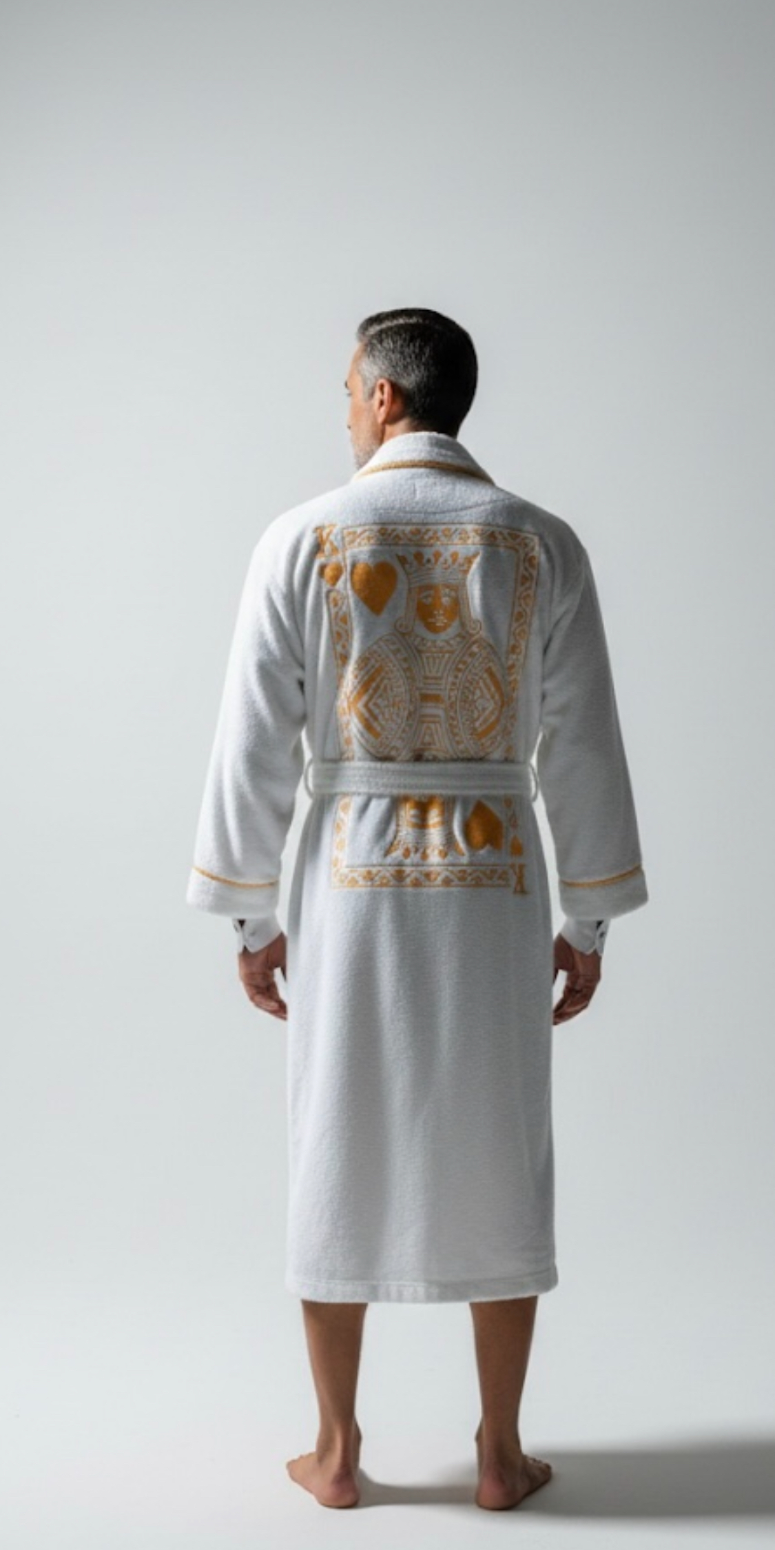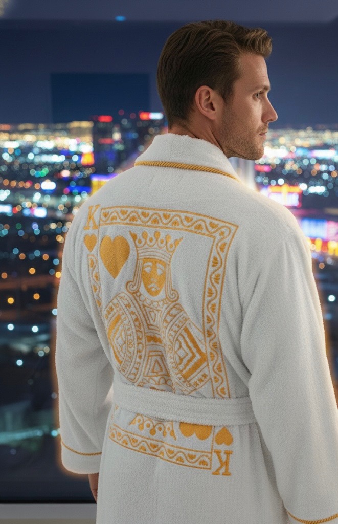 158,000 stitches and 6 hours to create the King of Hearts masterpiece. Premium embroidery on our iconic chenille. Powerful piece that turns heads and commands compliments gold and white, also available in black as well.